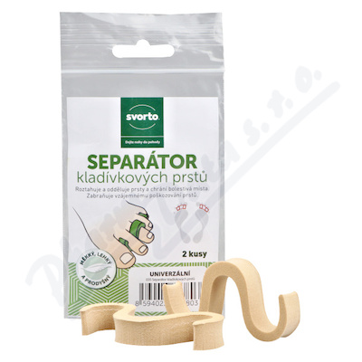 Gelový separátor je vyroben z měkkého, silikonového gelu a odděluje od sebe jednotlivé prsty. Jeho ideální měkkost a přilnavost brání tření prstů, vzniku oděrek a otlaků. Používá se i jako pomůcka k vyrovnání zkřížených prstů.