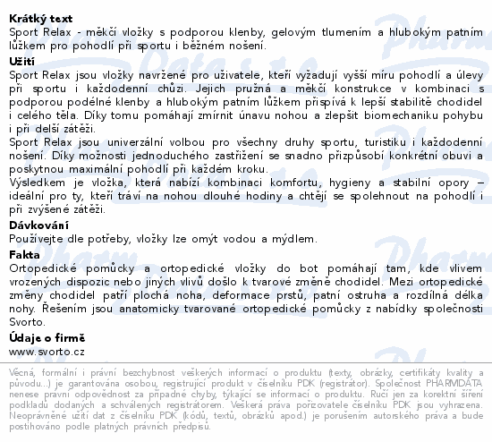 Sport Relax - měkčí vložky s podporou klenby, gelovým tlumením a hlubokým patním lůžkem pro pohodlí při sportu i běžném nošení.