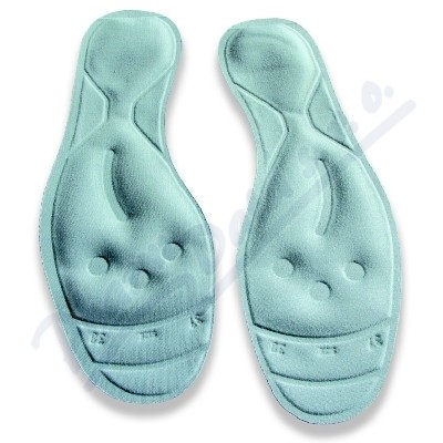 Gelové vložky snižující únavu při dlouhém stání nebo chůzi, zlepšují krevní oběh. Textilní povrch saje pot, snadný způsob čištění.