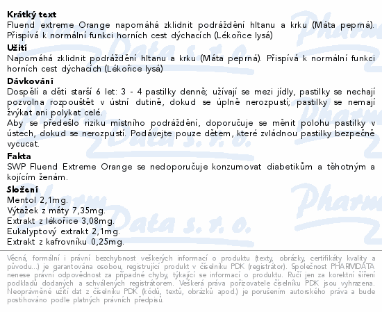 Fluend extreme Orange napomáhá zklidnit podráždění hltanu a krku (Máta peprná). Přispívá k normální funkci horních cest dýchacích (Lékořice lysá)