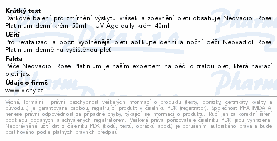 Dárkové balení pro zmírnění výskytu vrásek a zpevnění pleti obsahuje Neovadiol Rose Platinium denní krém 50ml + UV Age daily krém 40ml.